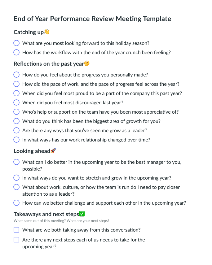 End of Year Performance Review Meeting Template