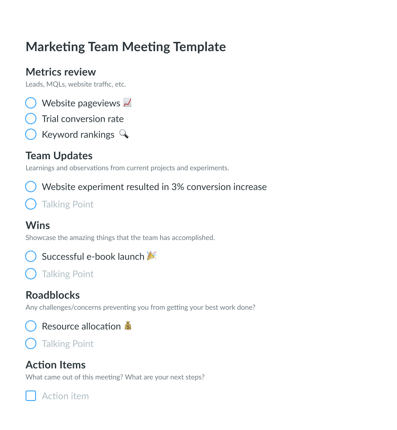 Use the template in real-time with your meeting attendees to collaborate on meeting notes