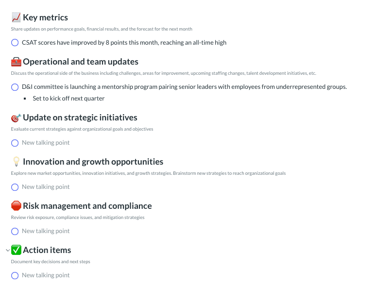 In Fellow, customize headers, talking points, and more before using it in your next meeting