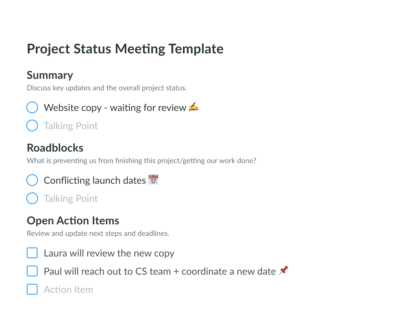 Use the template in real-time with your meeting attendees to collaborate on meeting notes