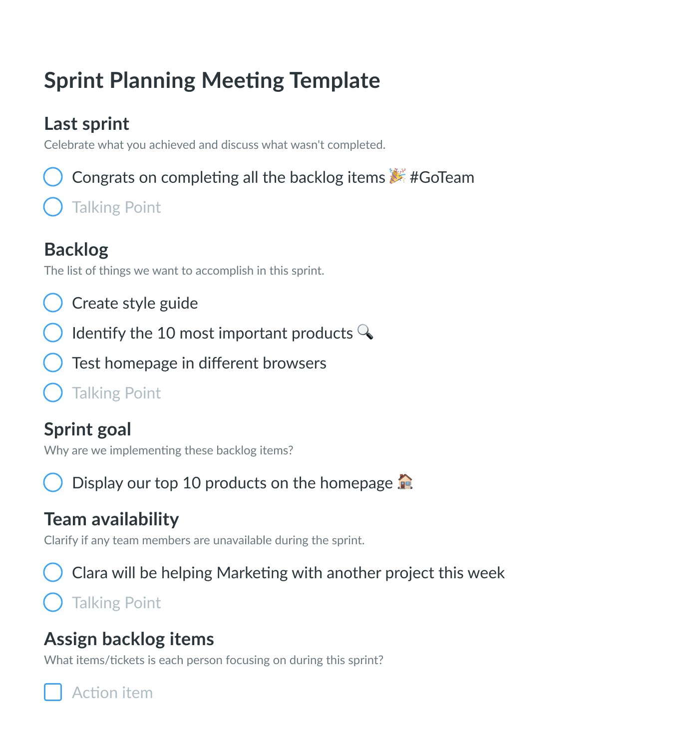 Use this Sprint Planning Meeting and Agenda Template to host a collaborative discussion that allows the Scrum team to choose the direction for the next sprint.