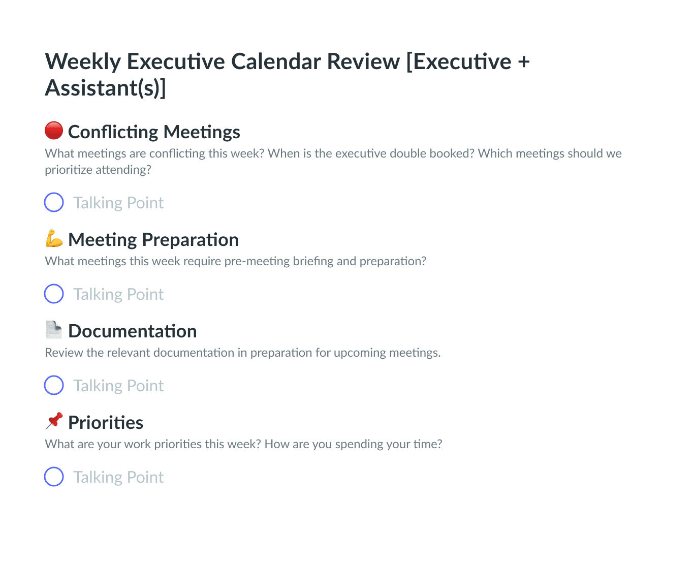 Weekly Executive Calendar Review Meeting Template